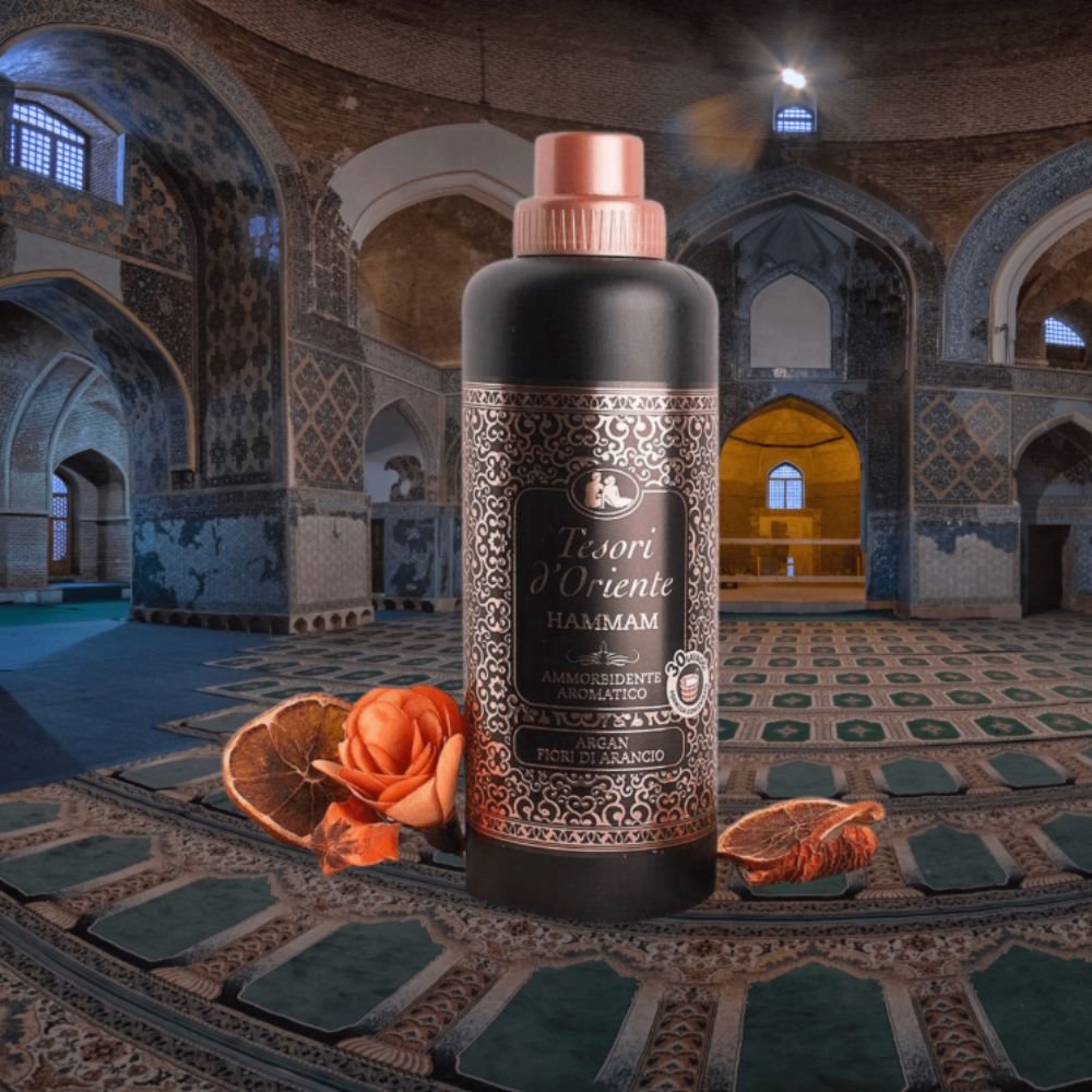 Tesori d’Oriente Hammam to popularny płyn do płukania tkanin z oferty tej włoskiej marki, dostępny w pojemności 760 ml. Jest inspirowany zapachami orientalnymi, szczególnie rytuałami Hammam, które nawiązują do tradycyjnych tureckich łaźni.