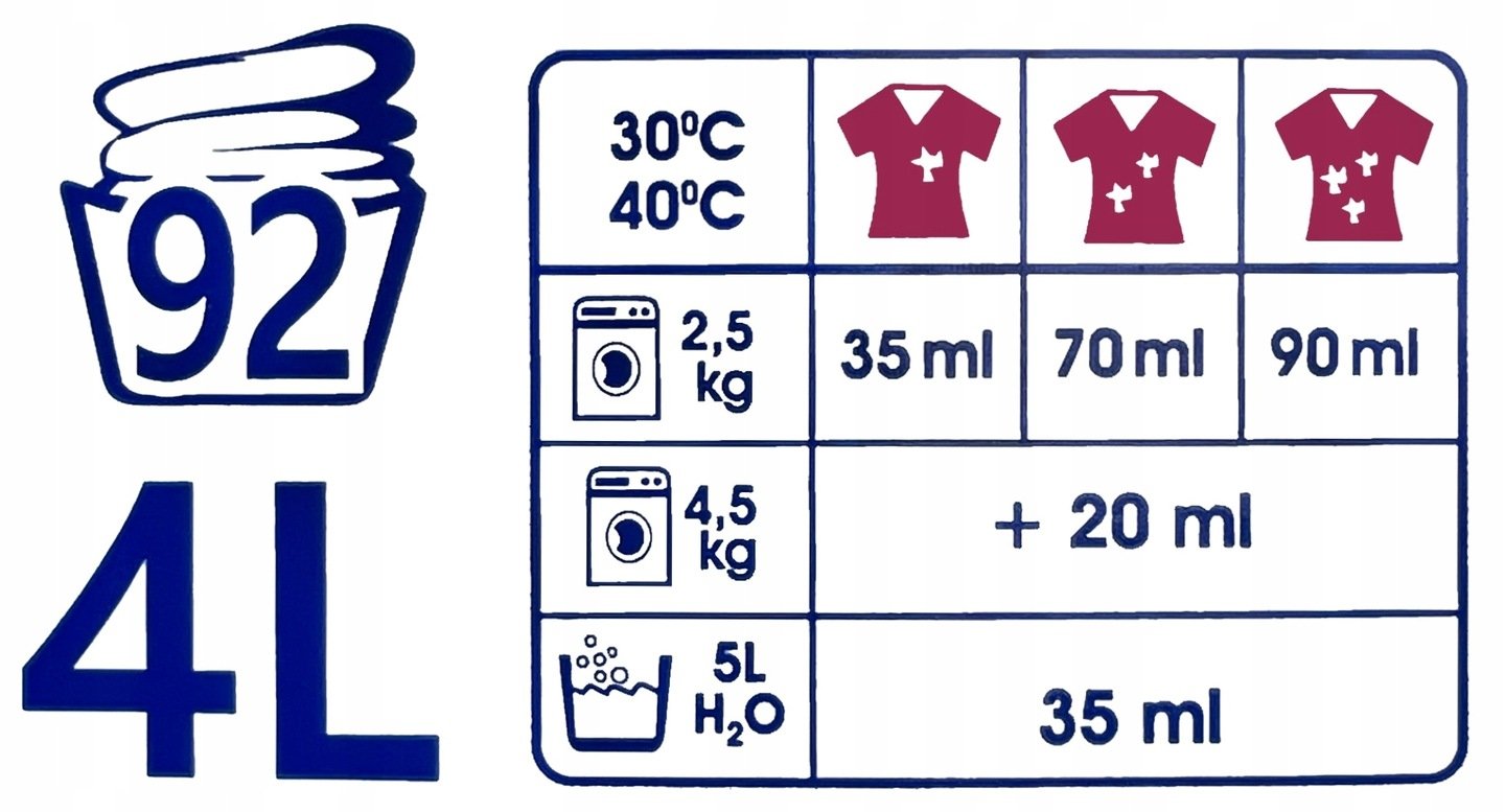 | Cechy dodatkowe | Skuteczny w niskiej temperaturze, Z odplamiaczem |