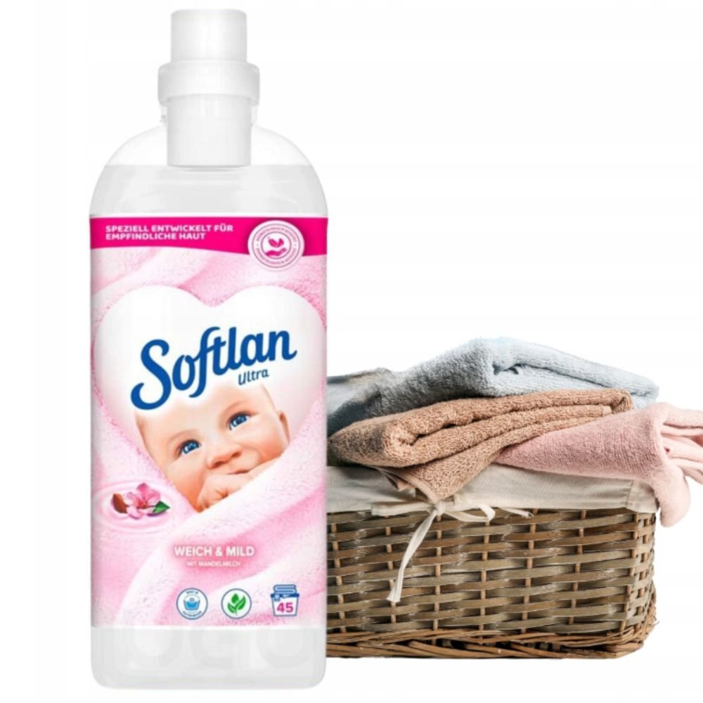 Softlan płyn do płukania tkanin Weich & Mild z mleczkiem migdałowym 45 prań/1l z NIEMIEC nowość