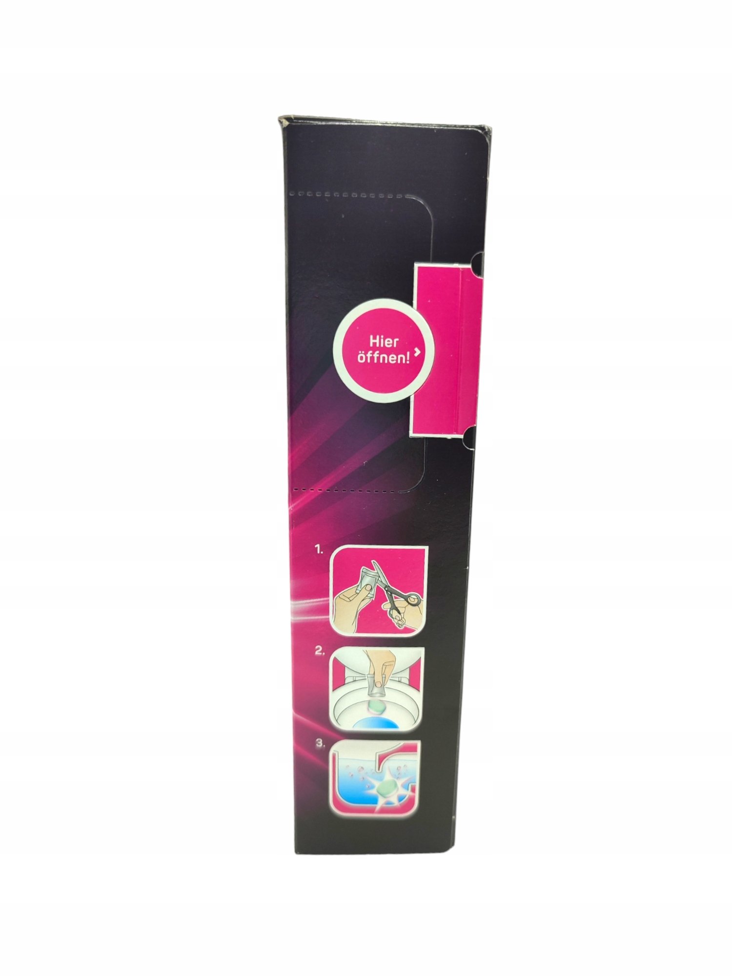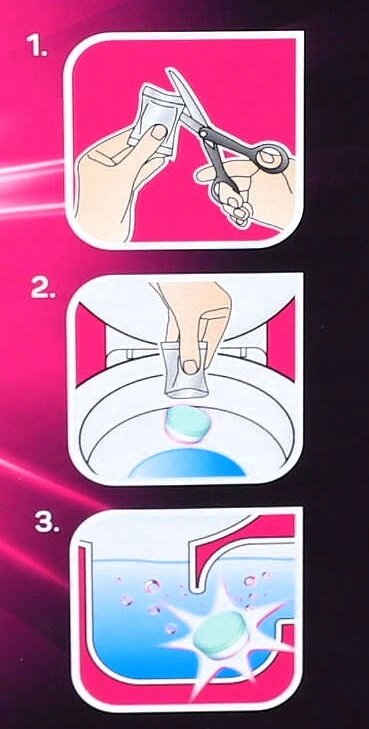 Wystarczy wyjąć tabletkę z opakowania foliowego i wrzucić do toalety, a następnie po odczekaniu 30 – 60 minut należy spłukać wodą .